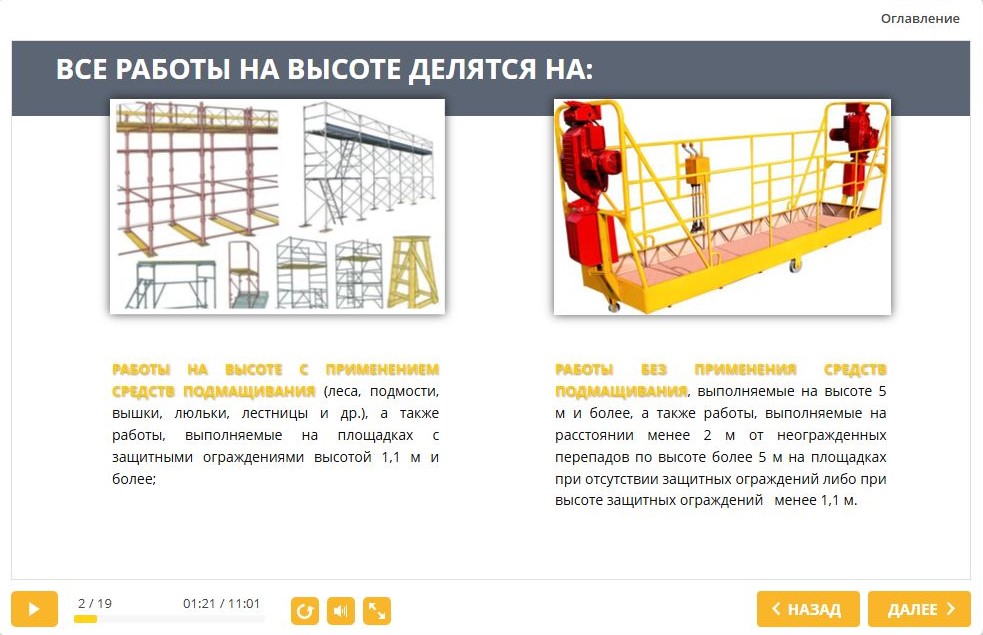 Обязательный предварительный этап безопасным методам и приемам на высоте